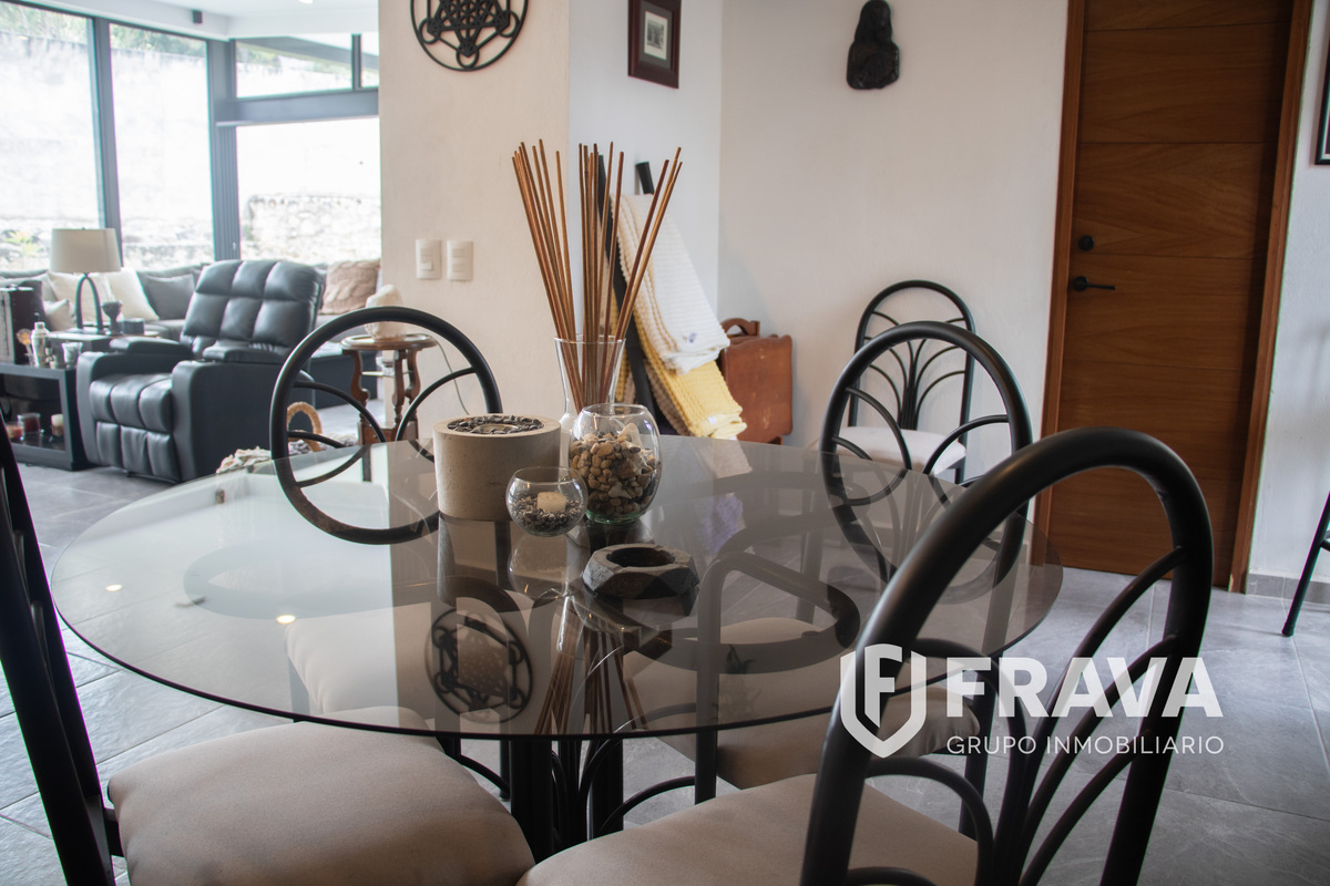 • área social con sala, comedor, antecomedor, chimenea, amplia cocina con acabado en granito, gran despensa, así como medio baño para mayor comodidad.