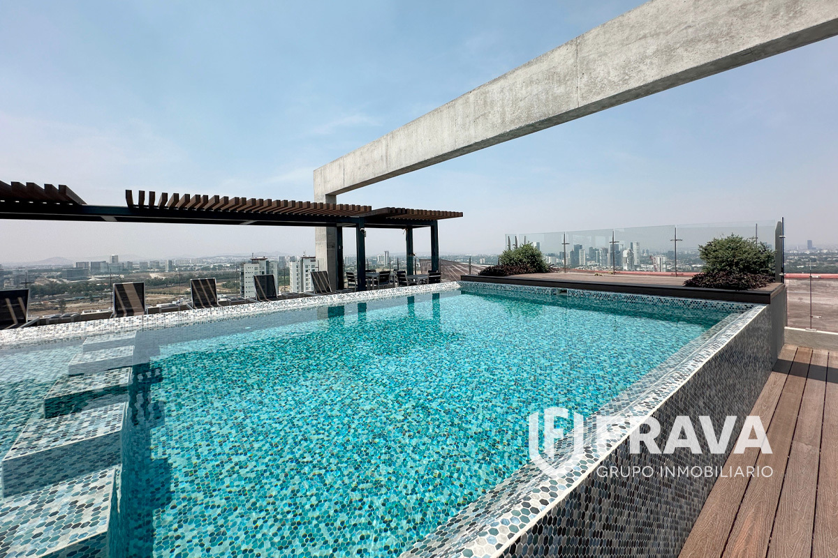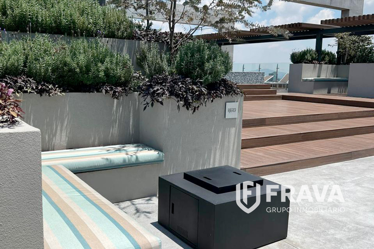 Edificio ubicado frente a parque, pet friendly, roof garden, elevador, alberca, camastros, gym, salon de juntas, salon de usos multiples, fogateros.