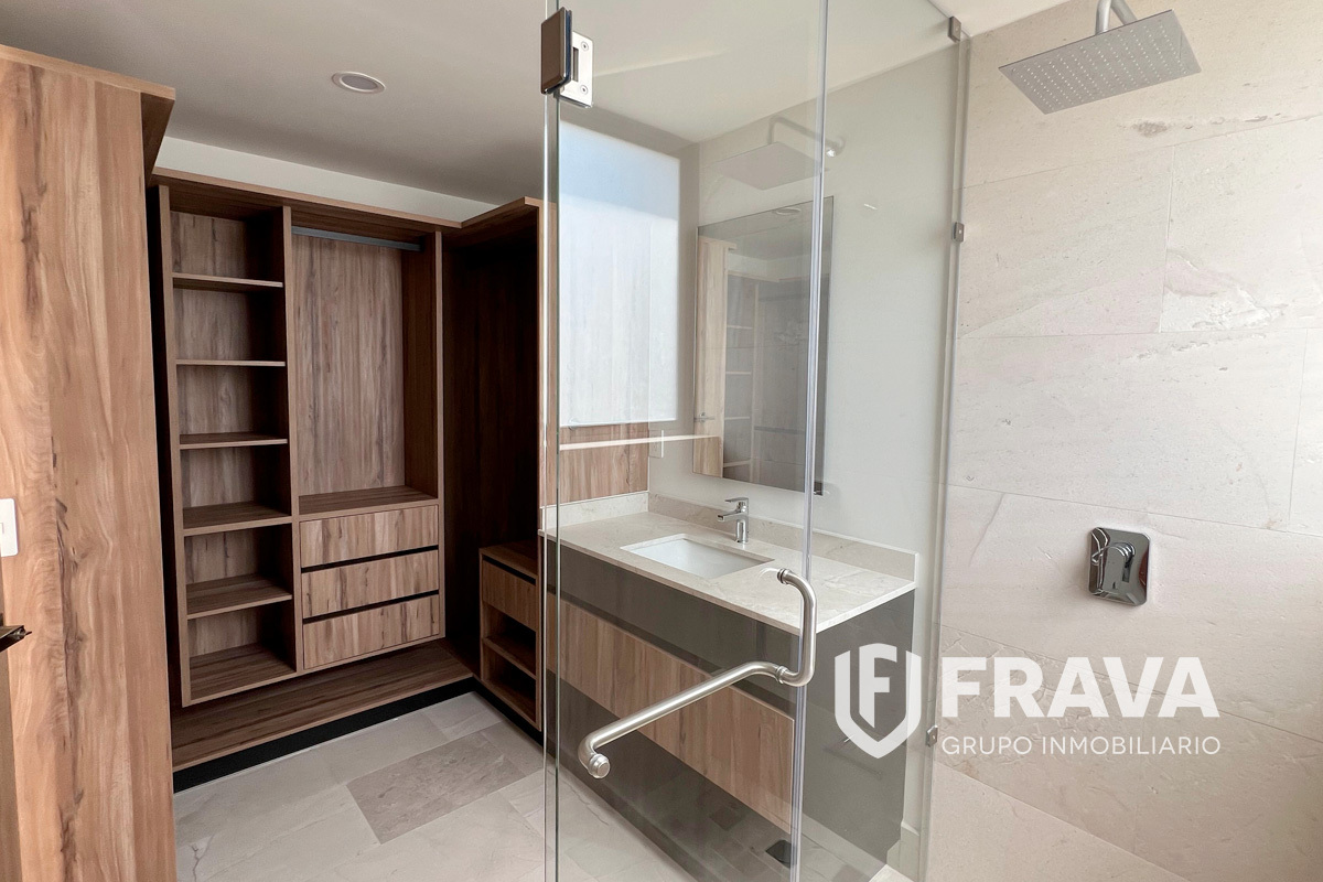 Departamento de lujo, equipado, aire acondicionado, cortinas, refrigerador, microondas y lavadora.